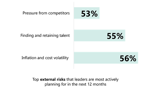 Top challenges: costs and inflation (56%), talent shortages (55%), and competitive pressures (53%).