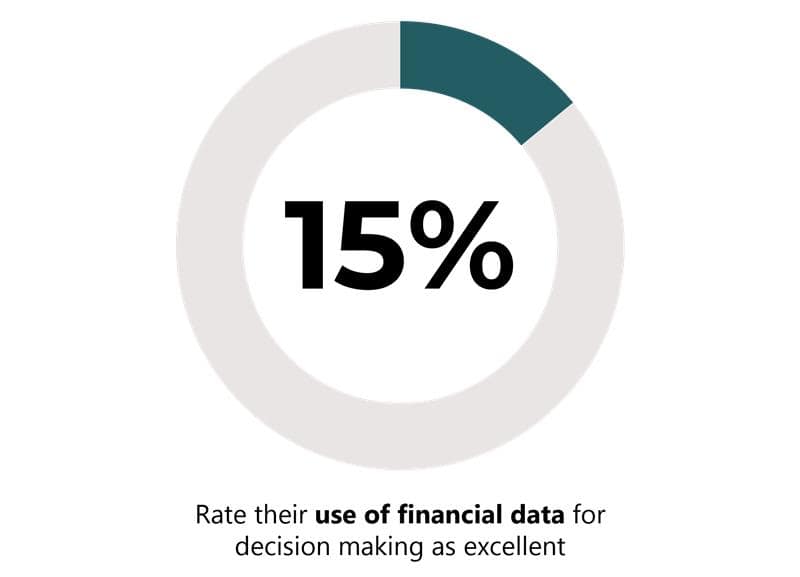 Leaders are also reassessing technology and data readiness—only 37% feel confident in choosing the right technologies, and just 15% rate their use of financial data as excellent.