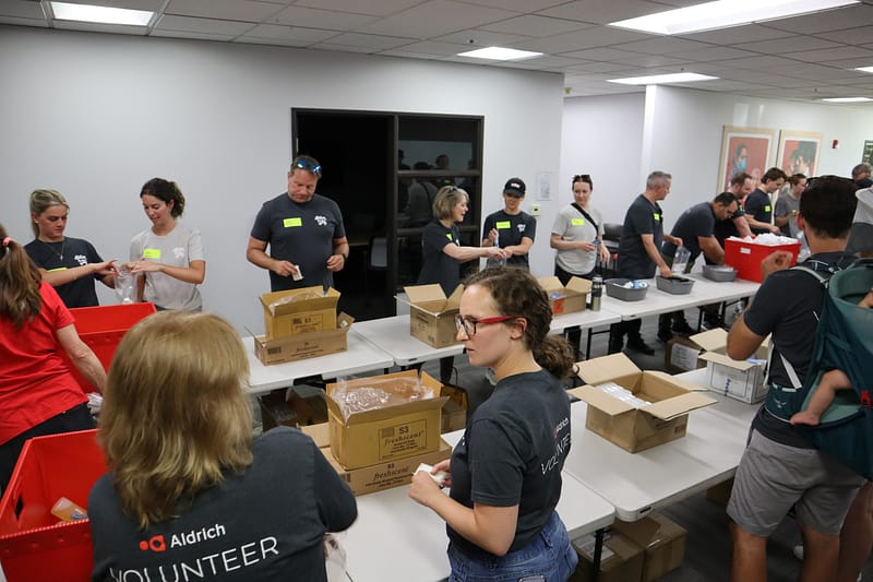 At Aldrich, we enhance lives through our Core Values by giving employees 16 hours of paid time off for volunteer work and supporting local organizations with donations. Our commitment is showcased during our annual Action Day, where employees volunteer for nonprofits in their regions.